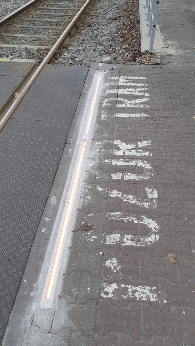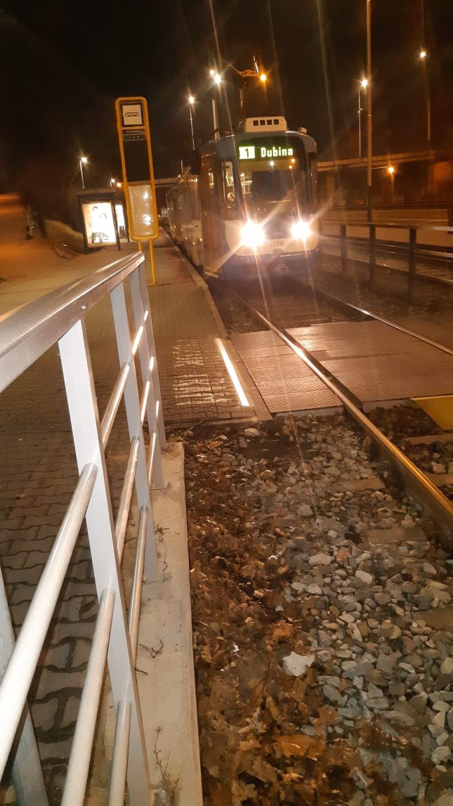 - Provedené práce: Instalace 4 LED pásků pro bezpečnější přecházení tramvajových kolejí